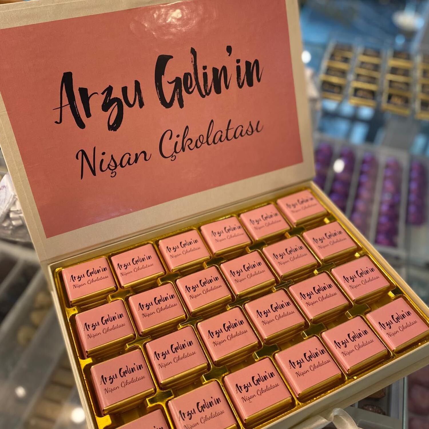 - kutu içeriği sütlü sargılı isim yazılı madden çikolatalarla hazırlanmaktadır