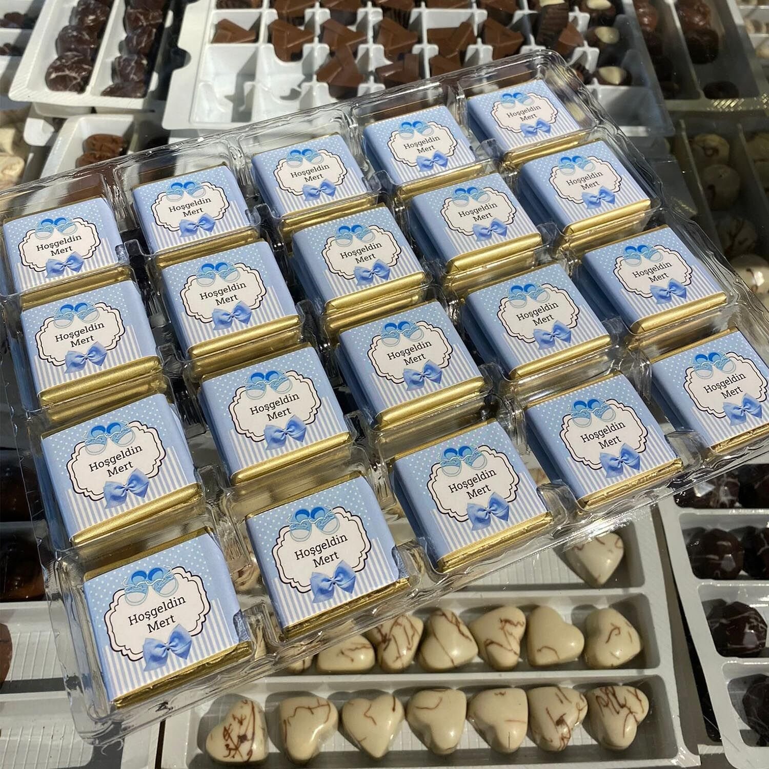 - 1 kg içerisinde 140 adet civarı isim yazılı madlen çikolata bulunmaktadır
