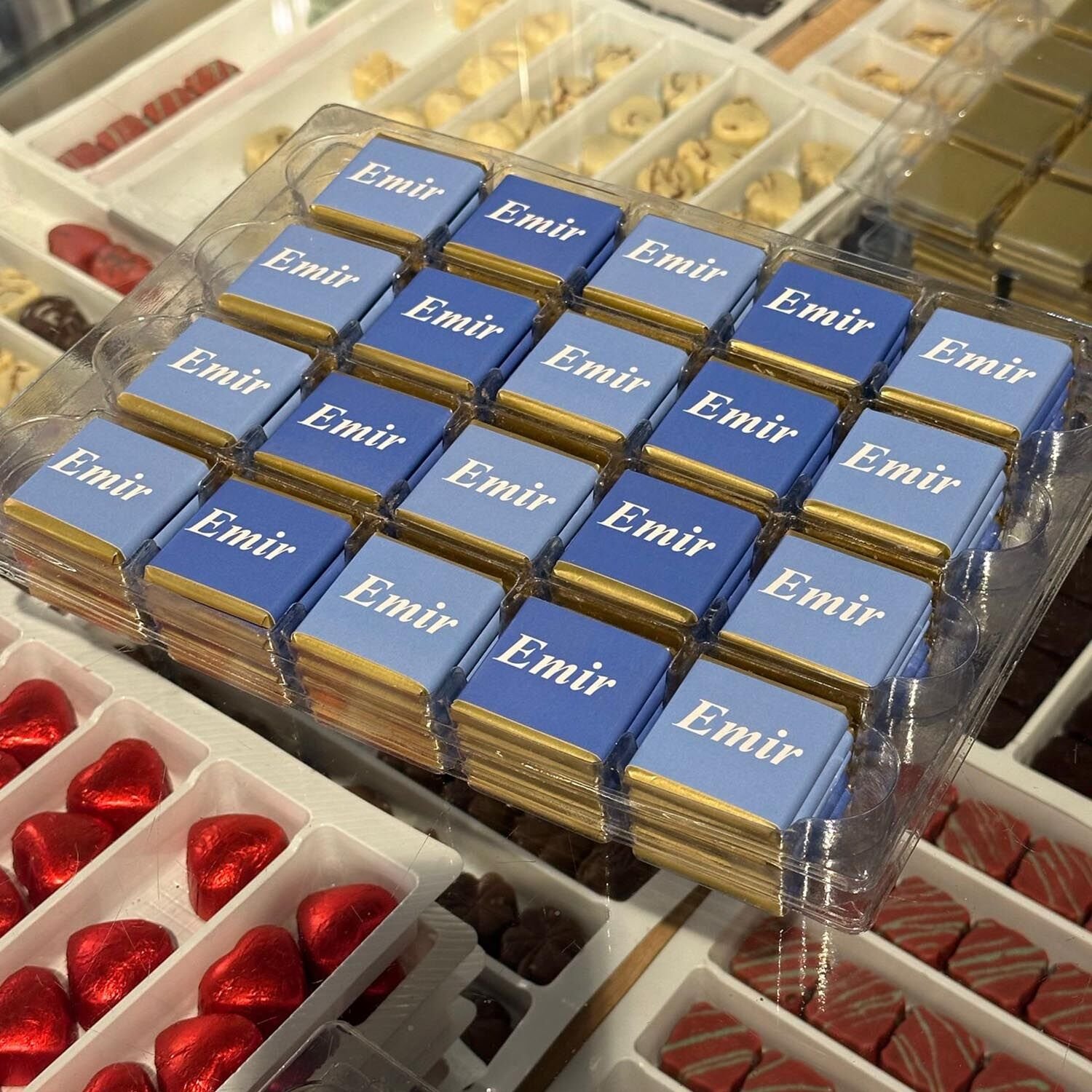- 3 kg içerisinde 425 adet civarı isim yazılı madlen çikolata bulunmaktadır .